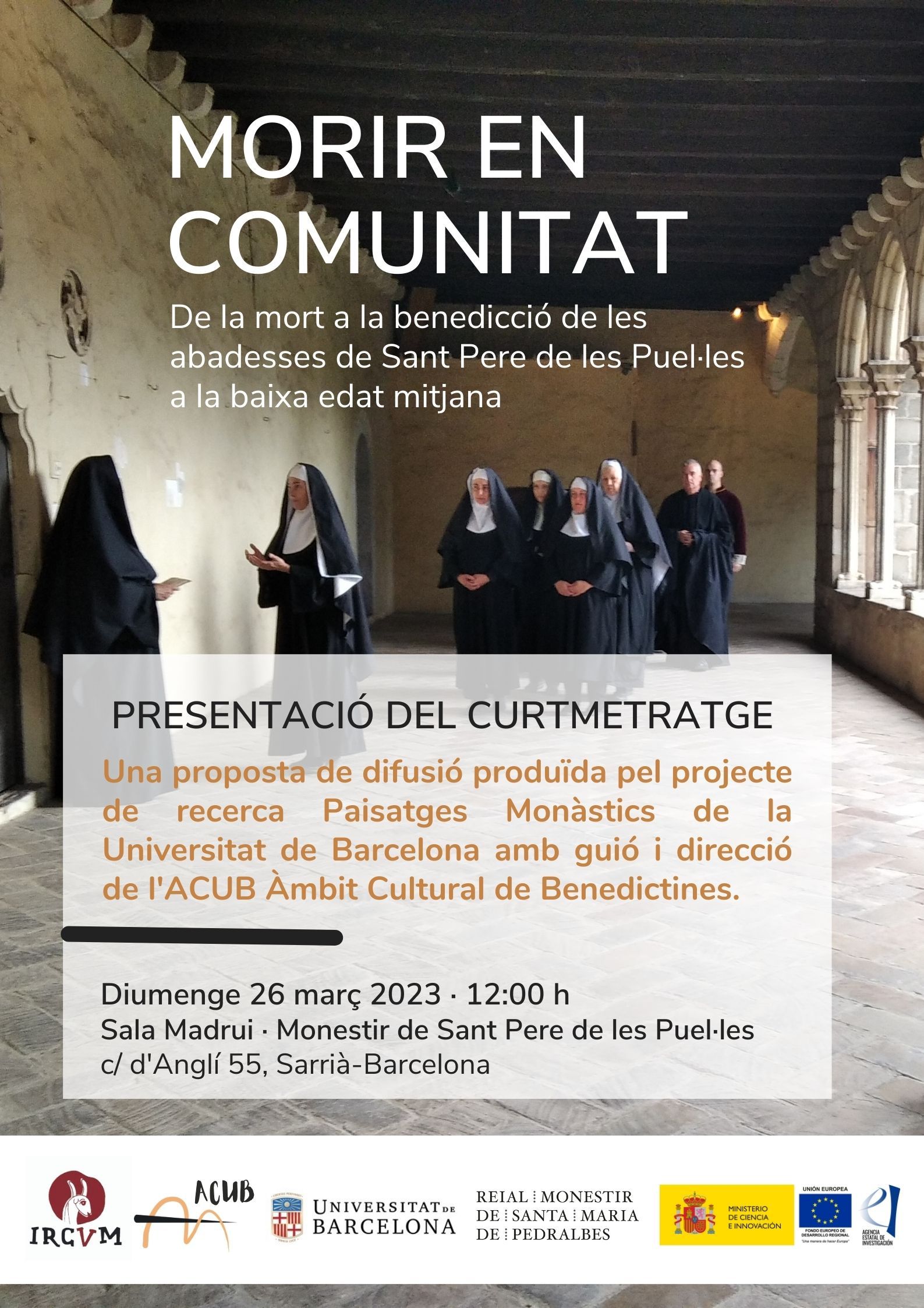 Presentació curtmetratge “Morir en comunitat” al monestir de Sant Pere de les Puel·les (26/03/2023)